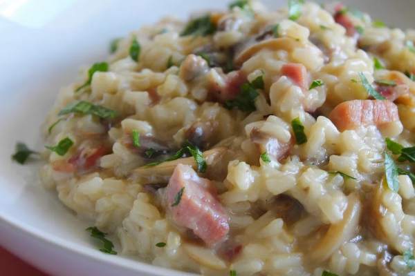 Riso con funghi e speck